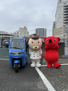千葉駅前で開催されているイベントで、ゆるキャラのチーバくんJR駅長犬がトゥクトゥクを見に来てくれました。